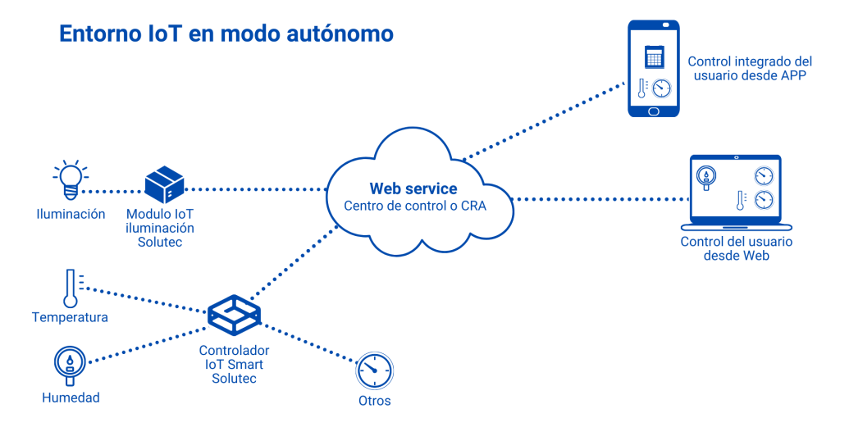 En ambos tipos de implementación podrá incluir el controlador de iluminación IoT del Grupo Solutec para que los usuarios pueden hacer el encendido/apagado remoto de su iluminación.